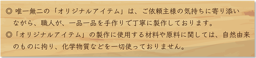 一品一品に思いを込めて 手作りしています(セミオーダーメイド)